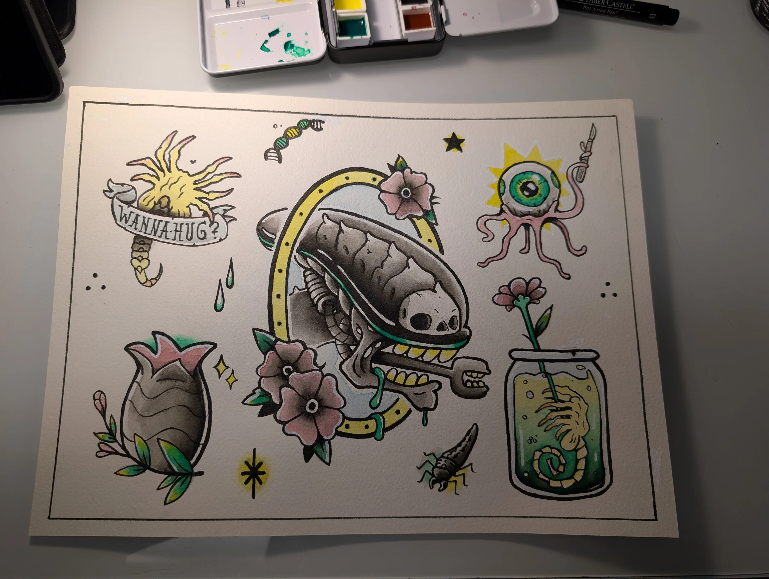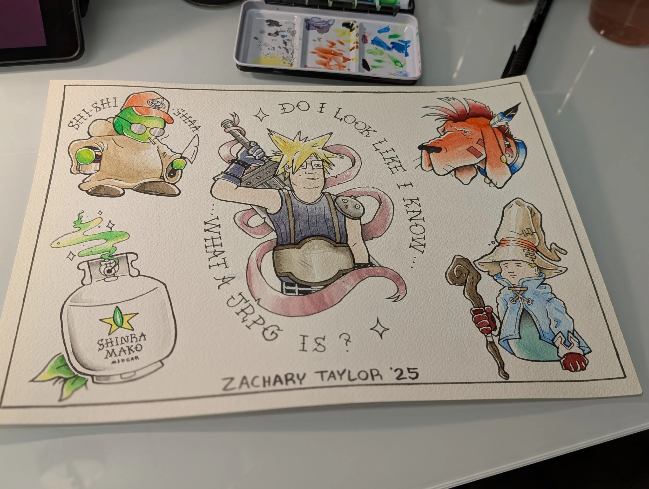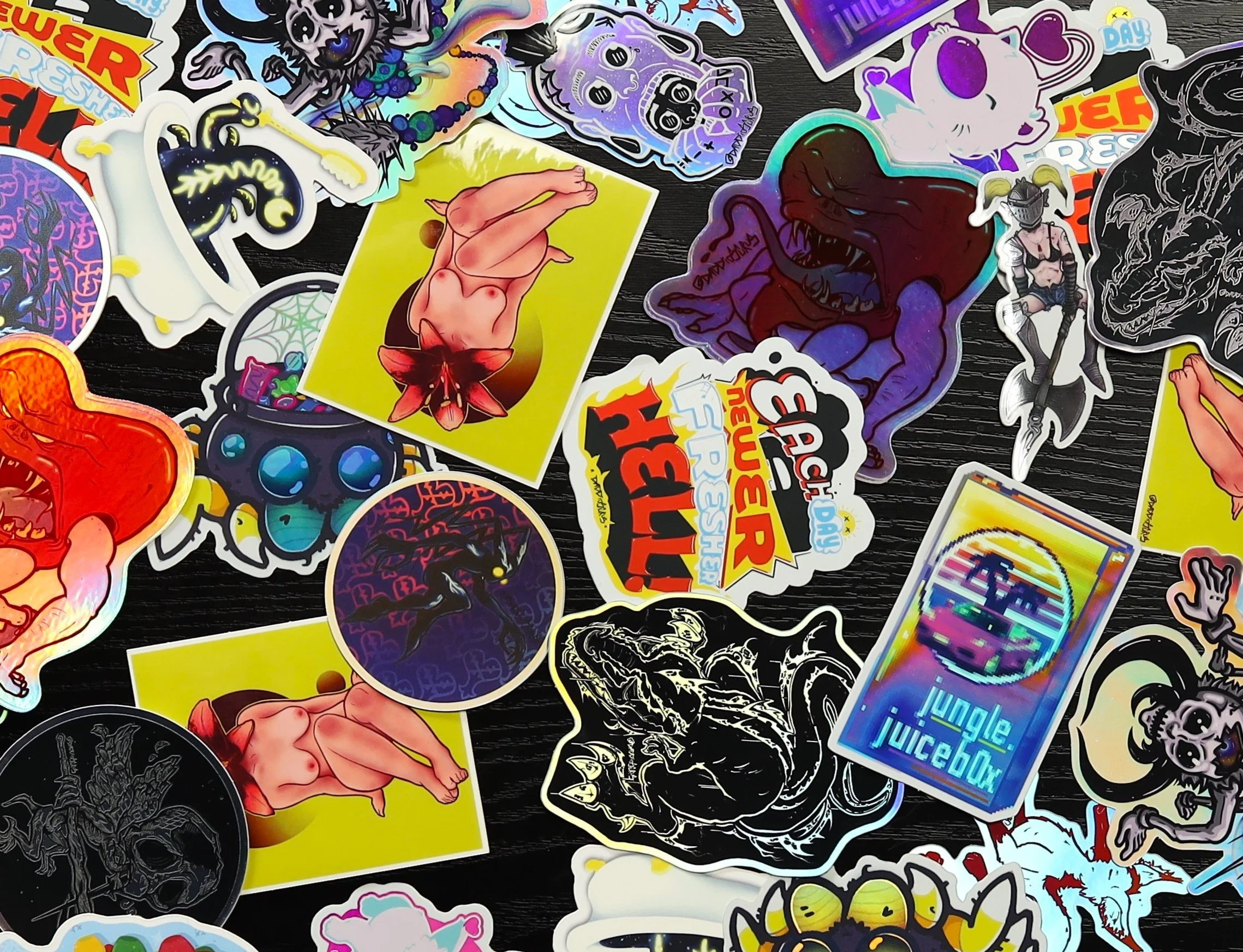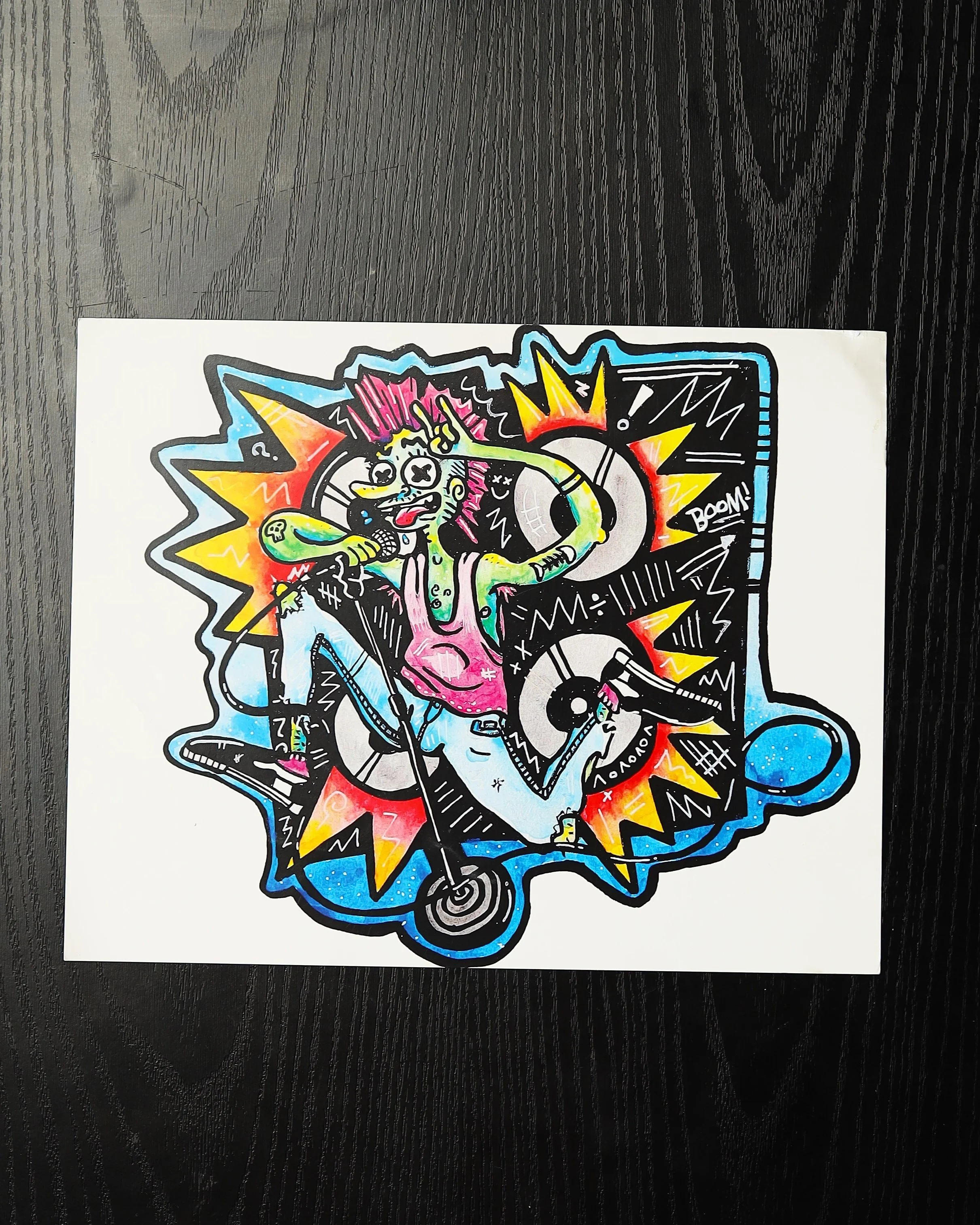 Categories: Select a Category Stickers Prints Doodle Portraits Originals/One-Of-A-Kinds Shop (NOW OPEN) Stickers | Prints | Doodle Portraits | Originals/One-Of-A-Kinds | FF x KOTH Flash Sticker Sheet $15.00 Alien Flash Sheet Print $25.00 FF x KOTH Flash Sheet Print $25.00 Pumpkinhead Print $8.00 Heartless Group Print $7.00 Bowl Print $8.00 RIP Mac Print $8.00 For You My Love... Greeting Card $8.00 Rockstar Watercolor Print $8.00 Lounging Print $8.00 Dark Dino Print $8.00 Sad Tape Print $8.00 Green Eyes Print $10.00 Dark Dino Sticker $4.00 Inside Sticker $4.00 Greataxe Girlie Sticker $4.00 Candy Spider Sticker $4.00 Newer Fresher HELL Sticker $4.00 Doodle Portrait from $15.00 Exercise Alien Painting $50.00 Space Babe Painting $300.00 Mysterious Mask Painting $50.00 Peachy Print 8x10” $8.00 Mixtape Kid Print 8x10” $8.00 Maned Wolf BW Print 8x10” $8.00 Heartless Sticker Sheet $6.00 Neoshadow Sticker $4.00 Lily Sticker $4.00 Love Bites Sticker $4.00 Maned Wolf Sticker $4.00 Light Dragon Sticker $4.00 Cutie Pie Astel Sticker $4.00 Elden Beast Bathtime Sticker $4.00 The Pit Print 11x14” $15.00 Nostalgia Print 8x10” $8.00 Maned Wolf Green 8x10” $8.00 Lily Print 8x10” $8.00 Golden Hippopotamus Print 8x8” $8.00 Mystery Sticker Bundle $12.00 Rockstar Watercolor original piece $40.00